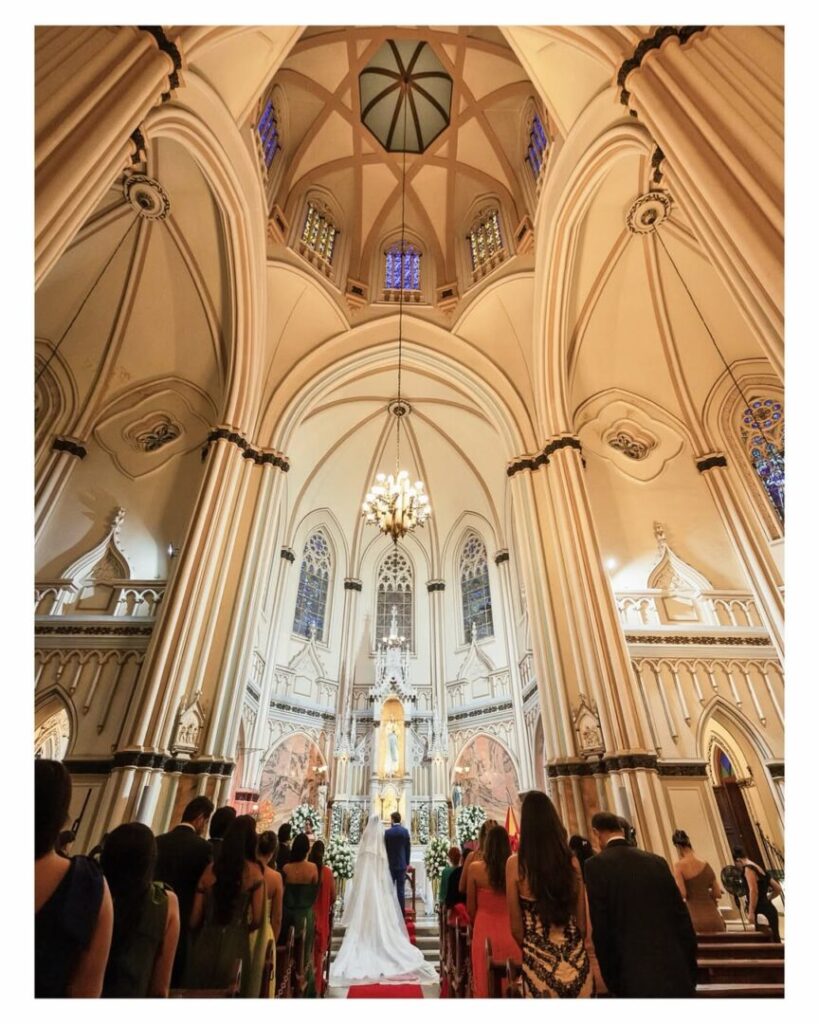 Antes da recepção, os noivos celebraram a cerimônia na Igreja Nossa Senhora de Lourdes, um dos cenários mais tradicionais de Belo Horizonte. Assim, o evento já começou com uma proposta clássica e elegante, que seguiu até a recepção.
